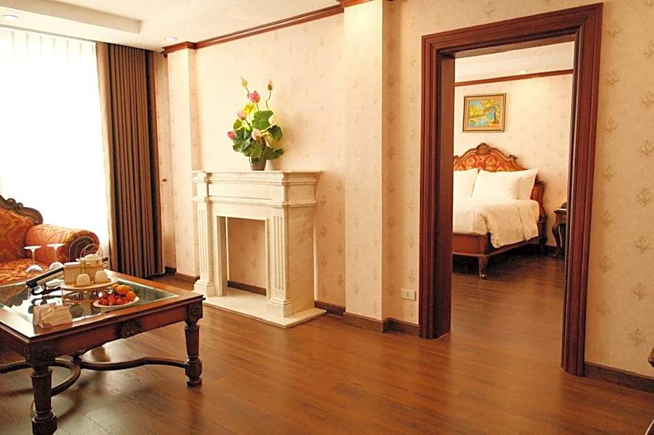 Air-conditioned suite features wooden flooring, a separate living area, flat-screen cable TV and private bathroom with a bathtub.